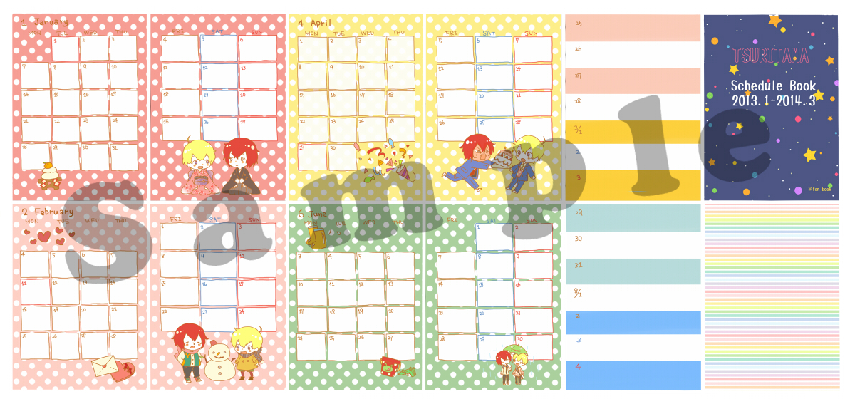 A6で月曜始まりのマンスリーで、13年1月~14年3月、時間割表と各月にメモページ